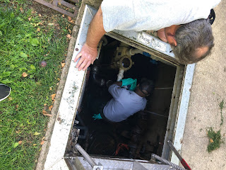 For two days we worked on the fountain in Washington Square located between Walnut and 6th Street. The fountain referred to as “the pool” by maintenance usually shoots up into the air about 8 feet and was only going about 4 feet up in the air. In the picture two guys named Will and Drew worked on finding out why the fountain was not at the correct height. I was able to help in being the eyes for both of them when things got a little complicated. We got to the root of the problem on day 2 by draining the fountain, taking apart the pipes and cleaning them out. We found papers and leaves clogging the pathway where the water flowed. After cleaning out the unwanted items out the pipes the fountain was back up and running. To fill up the fountain it takes a total of 6 hours.