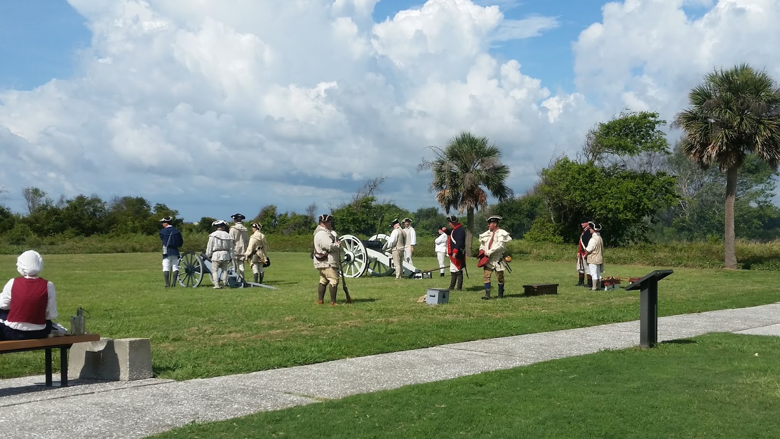 The week ended with a special Carolina Day celebration Saturday. Twice in the morning and twice in the afternoon, living history volunteers of the Revolutionary War put on a live (blank) cannon demonstration to commemorate the battle of Sullivan’s Island. Chief Byrnes and I roamed the area and kept watch on the beach nearby, giving sun-bathers a heads-up before the “boom”, and making sure no one came in to the ‘fire’ area. Fort Moultrie took on a little bit of the look it must’ve had so long ago, with white tents pitched up and men in era-appropriate uniforms.