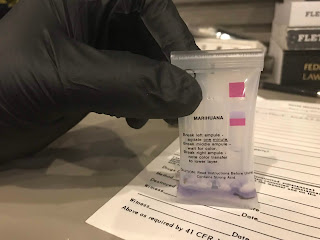 | As you can see a positive test for marijuana shows up as purple on top and clear on the bottom |
