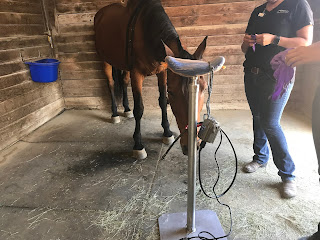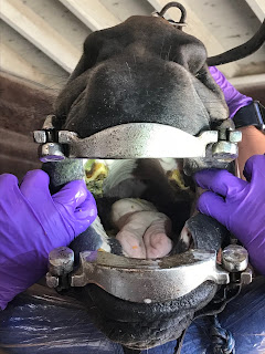 After training there was actually a vet visit that I got to witness! The way horses eat they end up grinding their teeth a certain way that can be really bad so the veterinarians do some dental work.