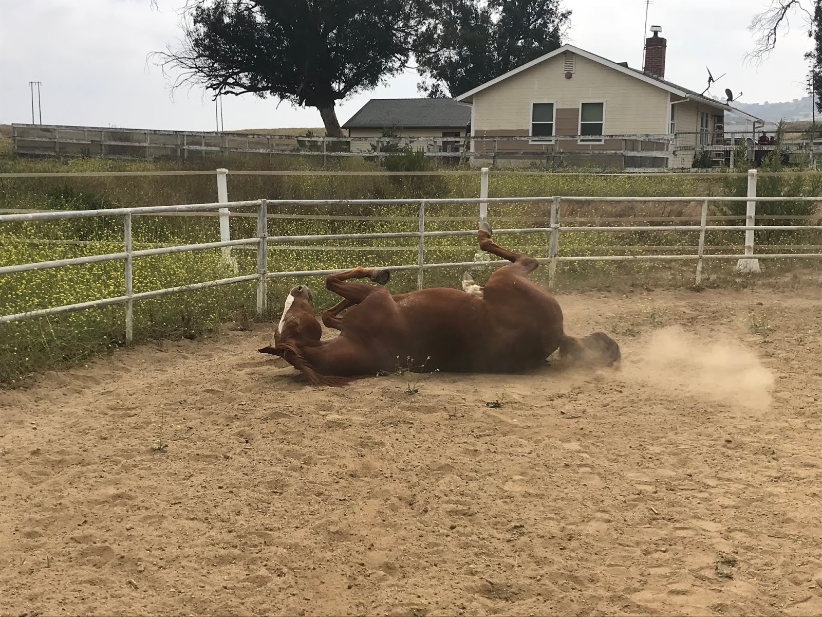 | Gunner being silly and rolling around. The stables for these horses is right by my house so I see this often! |