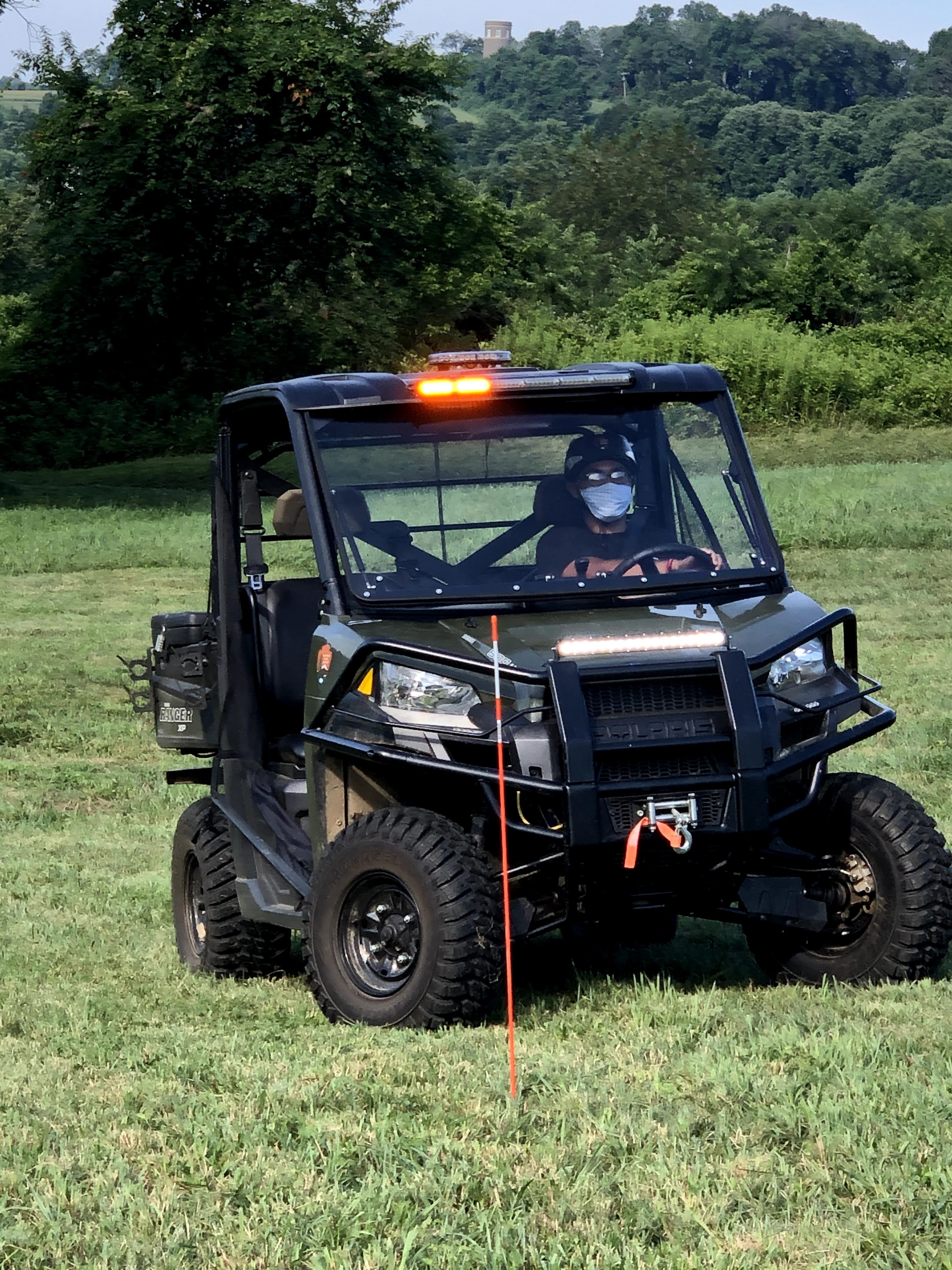 | Here I am during my physical portion of the certification after passing the online course. I am driving and weaving through the sticks to get familiarized with driving the UTV. After the rigorous training, I was sent to patrol the trails in First State.