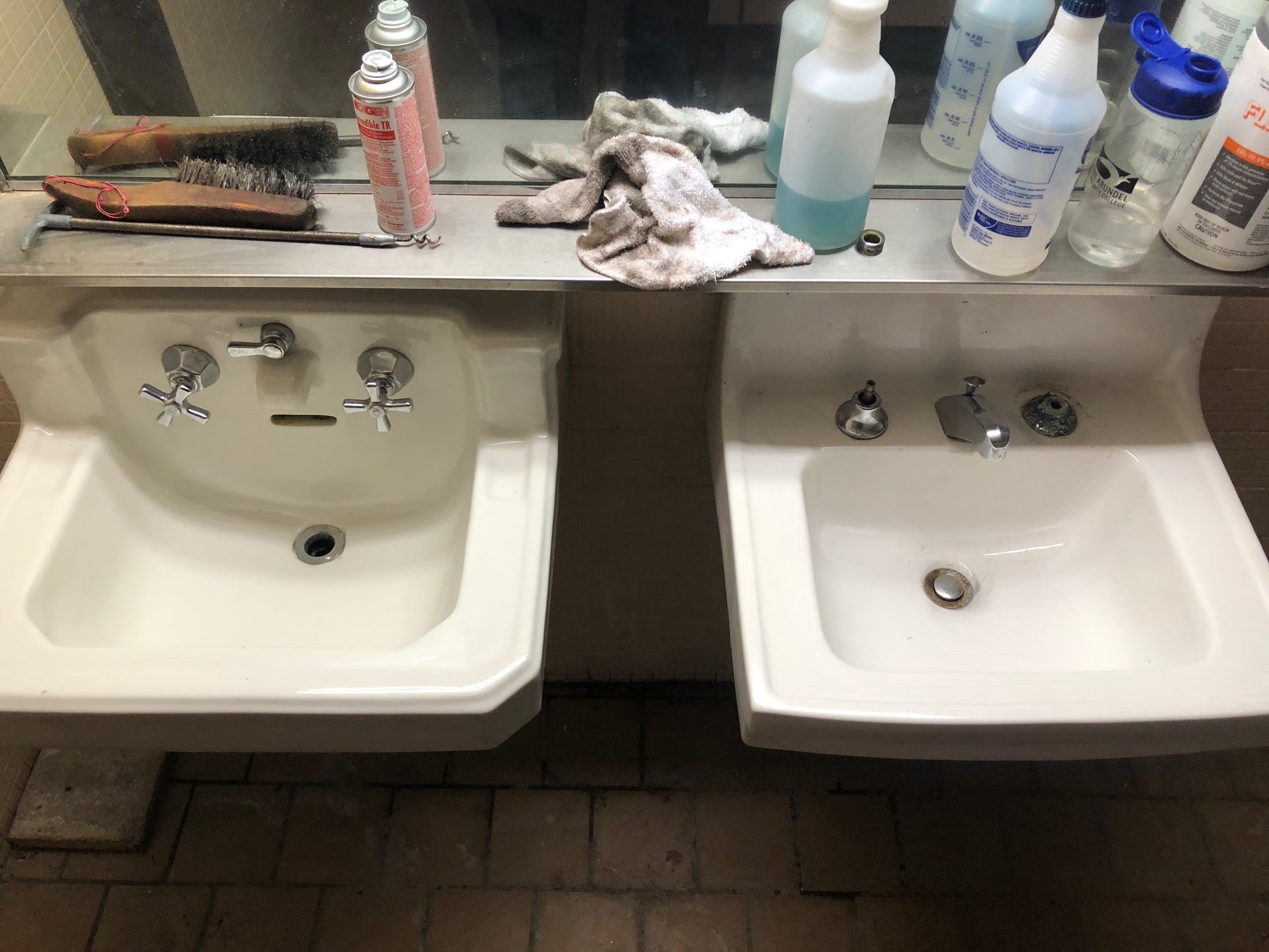 Progress was slow at first, but as the trash bags piled up we steadily made progress. By the end of the first day we had the messiest room completely cleared out. Initially we had only grabbed six trash bags from maintenance, completely underestimating the size of the job. By the end of the day, we had used 14. Day two saw us cleaning the bathrooms. It looked as if the bathrooms hadn’t been touched in the last 30 years, so we scrubbed everything from the walls to the sinks to the floor.