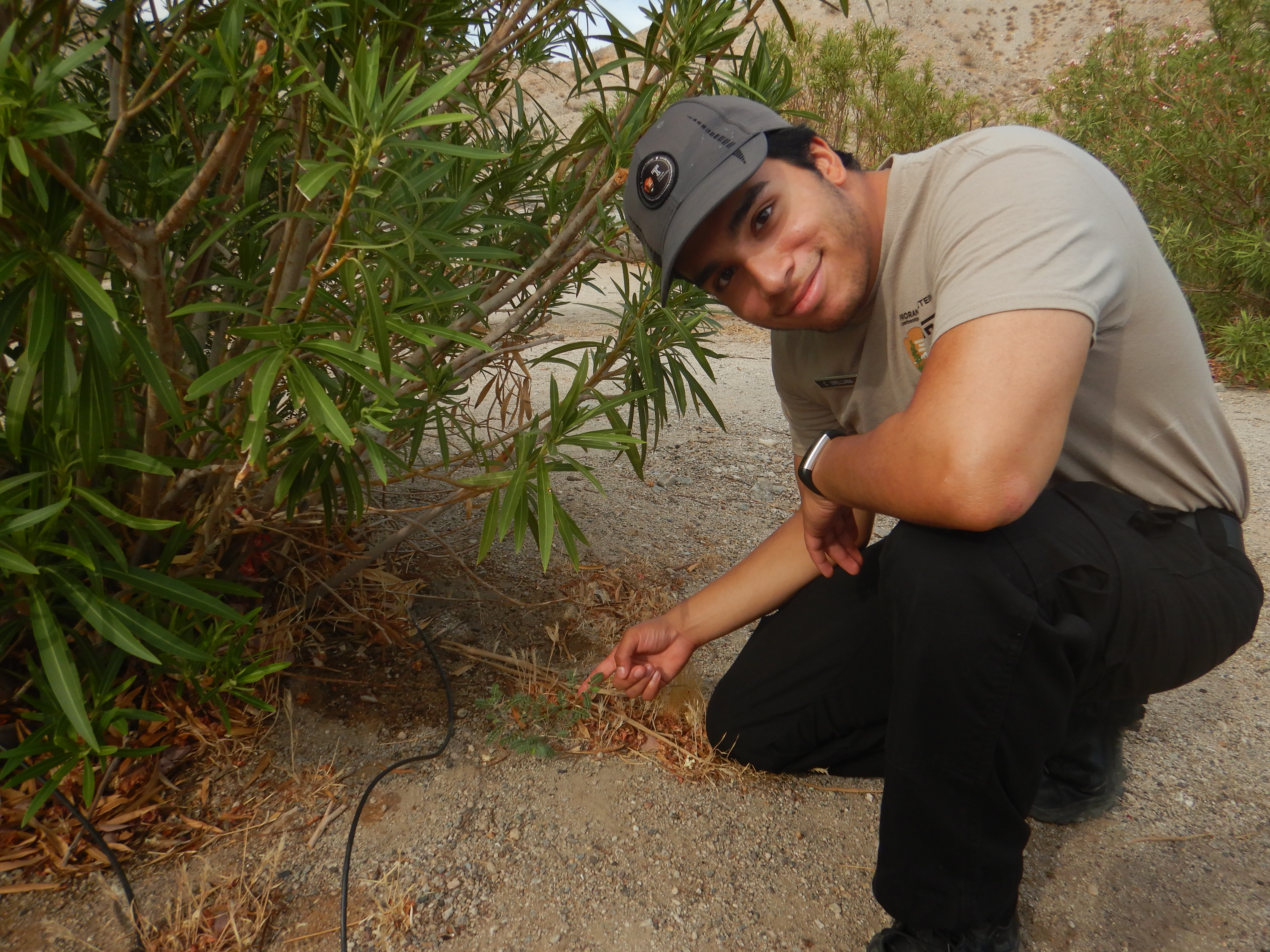 When I worked with the Department of Resources, I got to leave my mark on the recreation area by giving back to the landscape. Starting the week with vegetation, I got the chance to assist over at the Song Dong Native Plant Nursery. Here they grow native plants for the National Park Service use and other agencies (BLM, USGS, NDOW, etc.), also for other restoration projects in the region. They are usually given a list of plants and seeds in the winter so they can prepare by fall. Kelly Wallace, the biologist, and manager of the plant nursery, also assist LE by assessing the damage caused by those who go off-roading. Overton and Cottonwood East being commonly affected by this issue in the winter. Still, I helped out by transplanting some plots of creosote, watering plants, and sowing a bunch of Willow Baccharis.