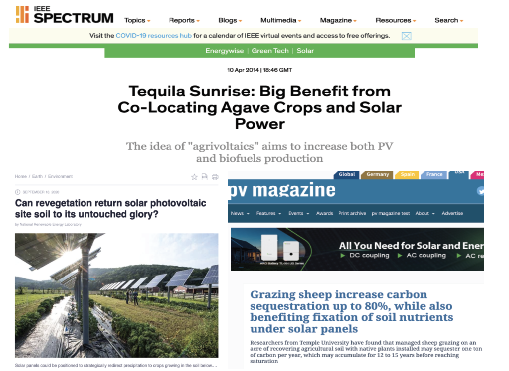 Solar energy- Agriculture colocation (Agrivoltaics) : Over the past decade, we studied the co-location of solar energy with crops/biofuels, grazing and/or pollinator-friendly native plants at multiple sites around the world, and the highlighted the environmental and socio-economic co-benefits. Learn more about our work: Ravi et al 2012, 2014, 2015, 2016; Choi et al, 2020, 2021, 2023, 2024; Bertel et al 2021; Towner et al 2021; Macknick et al., 2022)