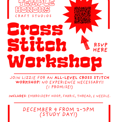 Take a break on the study day and join Lizzie for a cross stitch workshop!! Cross stitch is an easy-to-learn fiber craft and amazing stress reliever that involves creating designs with tiny stitched Xs. This workshop is for all levels – no experience necessary! Registration includes:🧵 embroidery hoop🧵 aida fabric🧵 needle🧵 thread🧵 instructions, support, and FUN!!!…