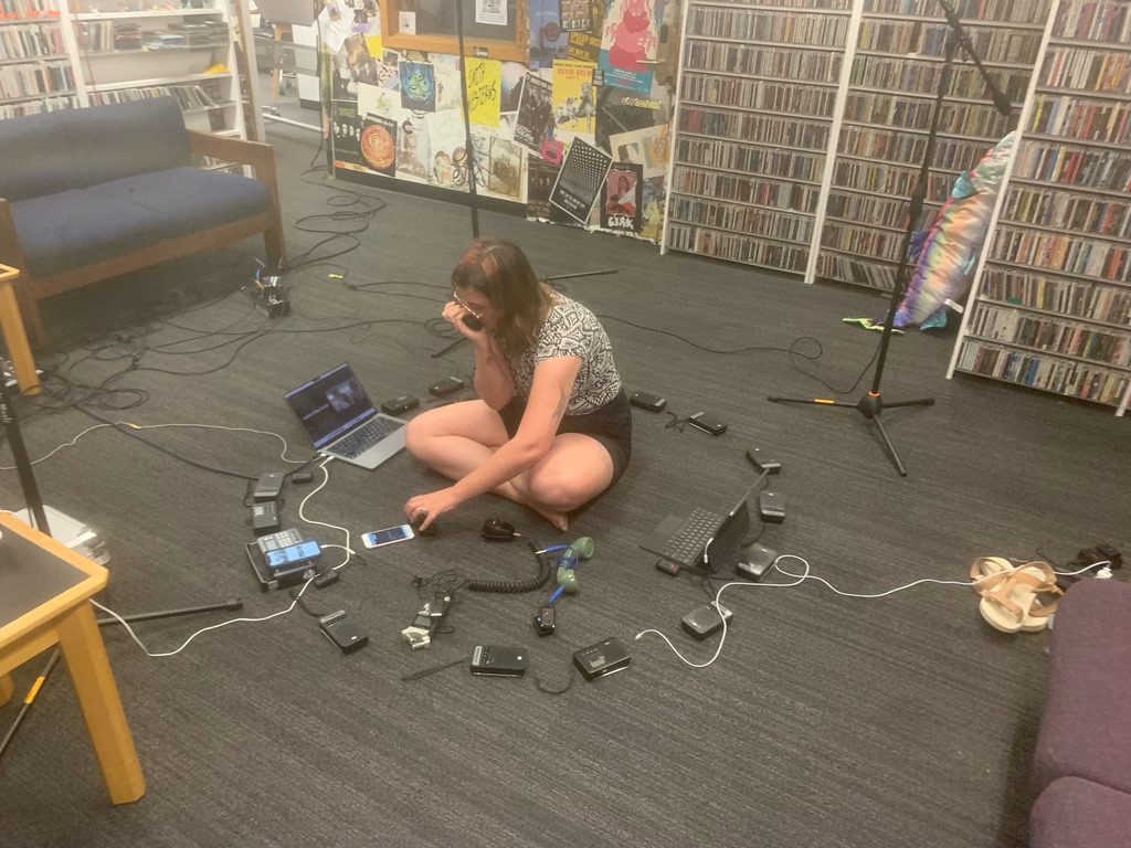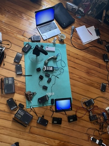 The Makerspace also allowed me to purchase radio equipment that I used in a live radio performance for this exhibition, and also for residency opportunities in Boulder, CO, and in Sisters, OR. The live performance entailed being surrounded by 15 radio receivers. Various microphones were hooked up to short-range transmitters, and explored the interference of voice, competing frequencies, and prerecorded sounds. The performance highlights the spiritual and unknown aspects of technology and our enmeshment in the natural world. With the support of the Media Archaeology Lab, I was able to play this work live on the radio at 1190 AM, along with a radio piece I developed called Bug Radio.