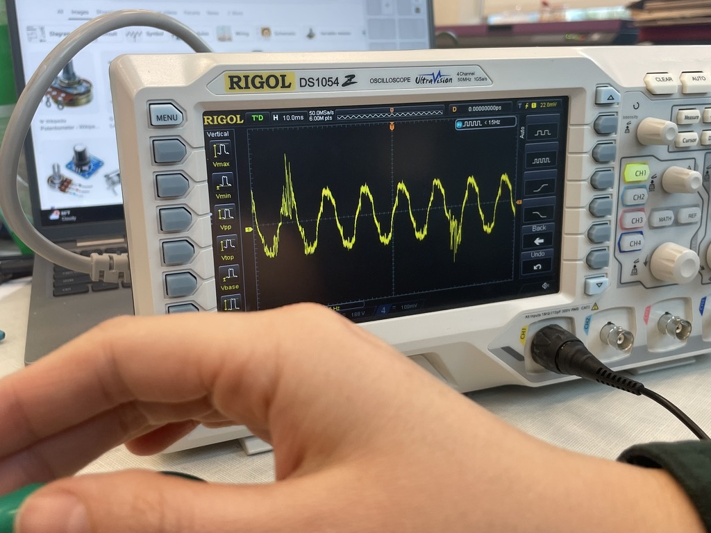 At the lab we used pennies (copper before the year 1982 and zinc after 1982) and salt water to create a voltaic cell which was able to stimulate a buzzer. Electricity in nature has a semi-magical undertone, and hearing the sound produced simply through the salt, copper, zinc, and water felt like connecting to the essence of electricity. During my time at the lab, we hooked up the salt battery to an oscilloscope, getting the opportunity to see the electric charge it produced, and explored possibilities for boosting the charge by arranging the batteries in series.