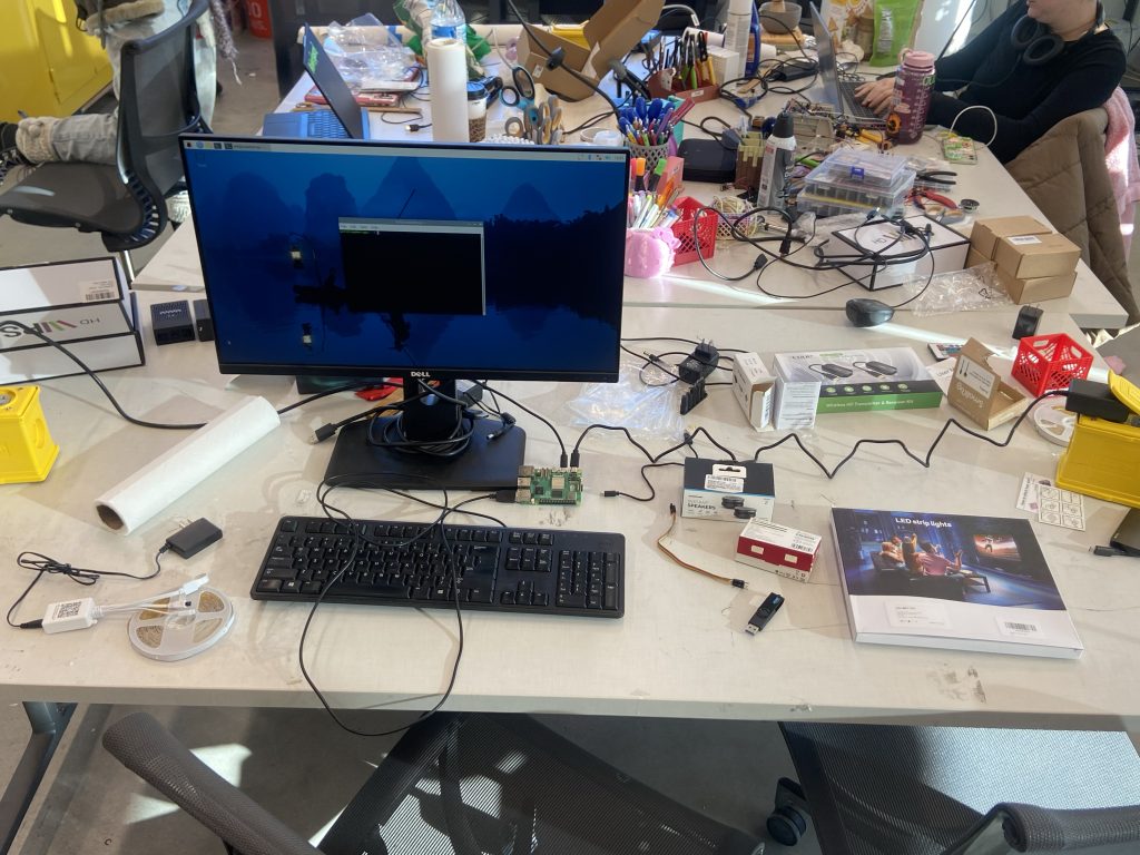 With the residency stipend I was able to purchase mini LCD screens, speakers, and a Raspberry Pi. Hannah provided an introduction to working with the Raspberry Pi. The computing hardware/software was integral in running the sequence of videos, sound, and lights. With the help of the Duckworth staff, we were able to run a program that looped several videos, as well as run lights simultaneously. A large portion of the residency was learning methods to make technology perform certain tasks.