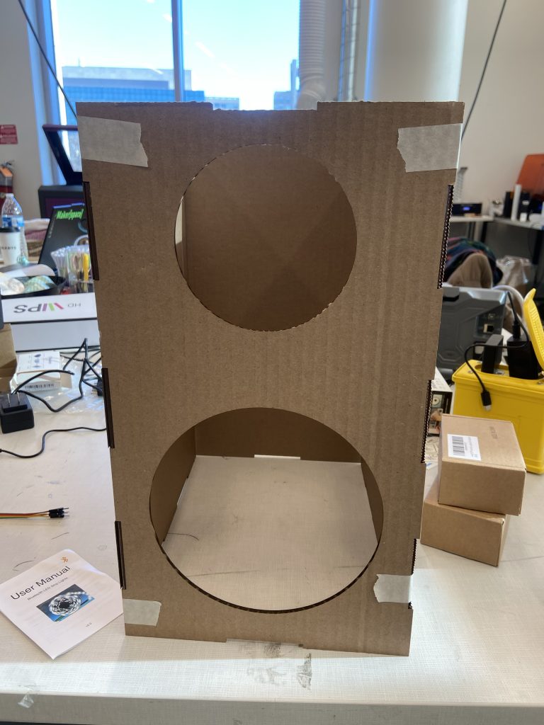 At the beginning of the Makerspace residency, I worked with Makerspace employees Hannah and Logan on the prototype of the speakers. We started by designing the exterior speaker housing before reverse engineering the interior to contain the electronic components and fit everything inside. I used SketchUp software to begin building a model of the speaker housing. We left SketchUp and used Rhino as well as a program that allowed us to create and download custom boxes for laser cutting. Logan and I also worked on 3D printed cases to fit the hardware that goes inside of the speakers.