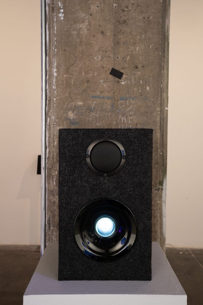 The planning, modeling, and research all came together in my solo exhibition at Automat Collective, curated by Brynn Hurlestone in June 2025. Speaker 1 and Speaker 2 were functioning speakers consisting of videos of groups of dancers, viewed through glass. The videos consisted of found footage from news broadcasts of a dance circle during a George Floyd protest in Philadelphia; the other video consisted of a filmed dance battle from the 90s. The viewers’ distance from the speakers enabled different experiences of seeing and hearing the video. I wanted to highlight different ways in which Black bodies are surveilled and how revolutionary acts of reverie and self-actualization take place within a system of anti-Black violence.